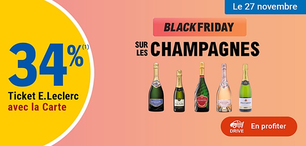 Leclerc : 34% en ticket leclerc sur les champagnes (Le 27/11)