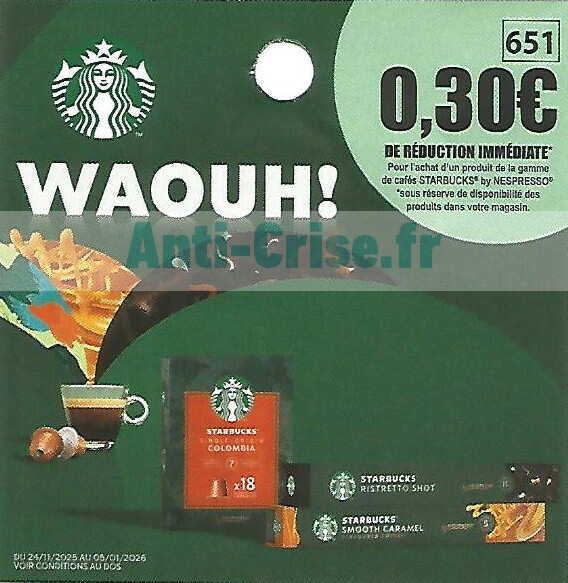 Les Bons en Magasin / Bdr 0,30€ STARBUCKS by Nespresso x10 ou x18« Dernier message par elfe le Aujourd'hui à 14:40 »16