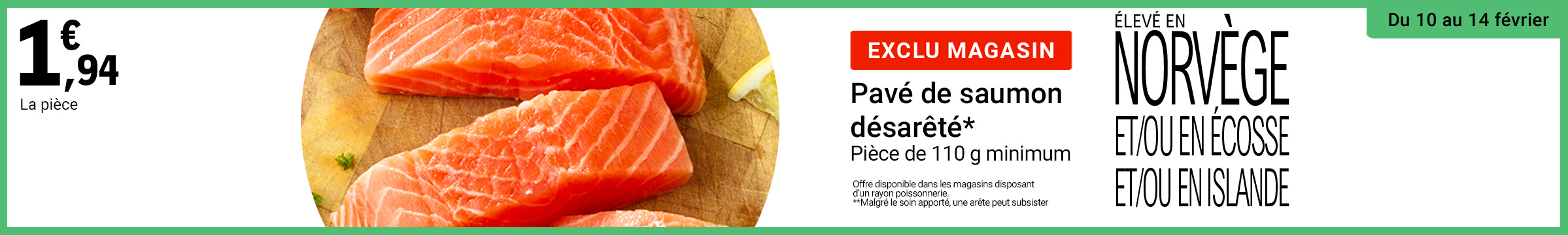 Bons Plans Courses <70% / Leclerc : pavé de saumon désarêté 1.94€ la pièce (10/02 - 14/02)« Dernier message par canelle le Aujourd'hui à 11:37 »14