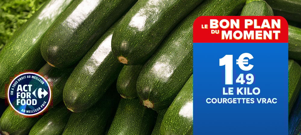 Bons Plans Courses <70% / Carrefour et Market : courgette origine France 1.49€ le kg (07/04 - 09/04)« Dernier message par canelle le Aujourd'hui à 16:03 »![]() Courgette vrac 1,49€ le kg Du 7 au 9 avril 2026 Origine France Calibre 14/21, catégorie 1 Valable dans les magasins Carrefour, Carrefour Market, Market et Drive participants, du mardi 7 au jeudi 9 avril 2026. Hors promotions. 29