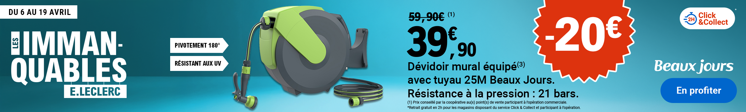 Les Bons Plans / Re: Leclerc : dévidoir mural équipé tuyau 25m Beaux Jours 39.90€ (06/04 - 19/04)« Dernier message par canelle le Aujourd'hui à 15:56 »Offre Immanquable Dévidoir mural équipé avec tuyau 25M Beaux Jours