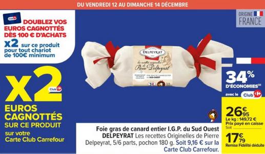 Carrefour : 68% de cagnottage sur le Foie gras de canard entier DELPEYRAT