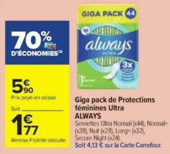 Sujet: Serviettes Always Ultra chez Carrefour Market (29/06 - 11/07) (Lu 335 fois)
