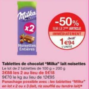 Tablette de Chocolat Milka chez Monoprix (21/07 - 08/08)