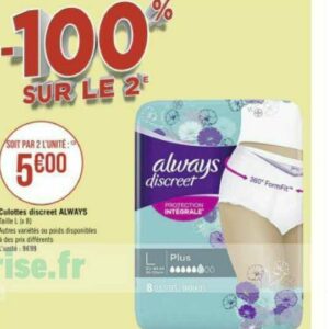 Culottes Discreet Always chez Casino (26/07 - 08/08)