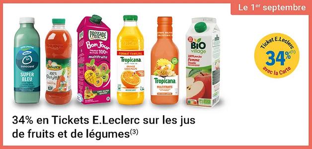 Auteur Sujet: Leclerc : 34% en tickets leclerc sur les jus de fruits et de légumes (Le 01/09)  (Lu 696 fois)
