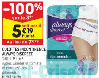 Culottes Always Discreet chez Leader Price (31/08 - 12/09)