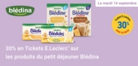 Leclerc : 30% en tickets leclerc sur produits petit déjeuner Blédina (Le 14/09)