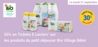 Leclerc : 30% en tickets leclerc sur petit déjeuner Bio Village bébé (Le 21/09)