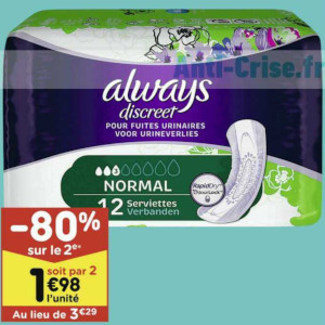 Serviettes Discreet Always chez Leader Price (22/02 - 06/03)