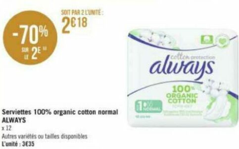 Serviettes Cotton Always chez Casino (14/03 - 27/03)