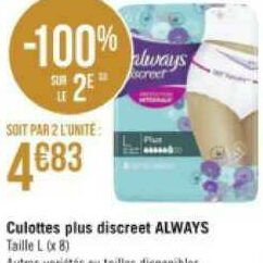 Culottes Discreet Always chez Casino (14/03 - 27/03)