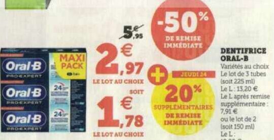 Sujet: Dentifrice Oral-B chez Magasins U (22/03 - 02/04) (Lu 274 fois)