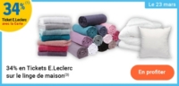 (1) Offre en Ticket E.Leclerc non cumulable avec des produits de la même gamme bénéficiant d’un autre « Ticket E.Leclerc » ou d’une autre promotion. Bon d’achat réservé aux porteurs de la Carte E.Leclerc, sur présentation en caisse de la Carte E.Leclerc et valable dès le lendemain de son obtention, cumulable sur la Carte E.Leclerc et utilisable sur tous les produits de l’ensemble des centres E.Leclerc participant au programme de fidélité. Offre limitée à 15 produits par foyer par opération et non cumulable avec des produits de la même gamme bénéficiant d’un autre « Ticket E.Leclerc » ou d’une autre promotion. Carte E.Leclerc 100 % gratuite et disponible immédiatement. Offre réservée à une consommation personnelle. Le magasin se réserve le droit de refuser toute demande d’une quantité supérieure aux besoins habituels généralement constatés pour une consommation personnelle. Offre interdite à la revente. Offre non cumulable avec des produits de la même gamme bénéficiant d’une autre promotion et non valable sur les produits signalés en magasin.