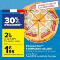 Sujet: L'Ortolan portions Fromagerie Milleret chez Carrefour (13/09 - 26/09) (Lu 283 fois)