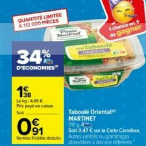 Taboulé Pierre Martinet chez Carrefour (13/09 - 26/09)