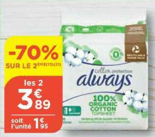 Serviettes Cotton always chez Atac (01/02 - 06/02)