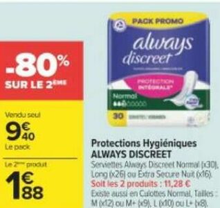 Serviettes always Discreet chez Carrefour (14/08 - 28/08)