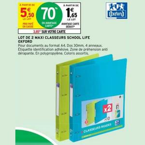 Classeurs School Life Oxford chez Intermarché (29/08 - 10/09)