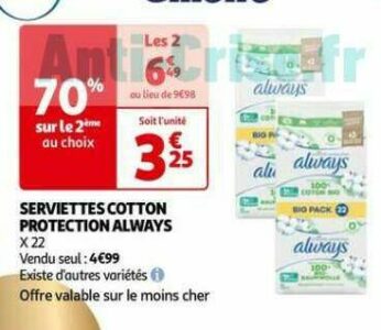 Sujet: Serviettes always Cotton Protection chez Auchan (26/09 - 02/10) (Lu 227 fois)