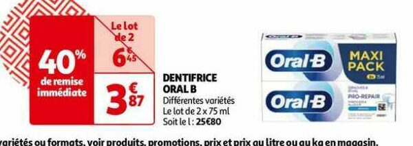 Dentifrice Oral-B chez Auchan (26/09 - 02/10)