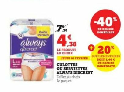 Sujet: Culottes always Discreet chez Magasins U (30/01 - 11/02) (Lu 235 fois)