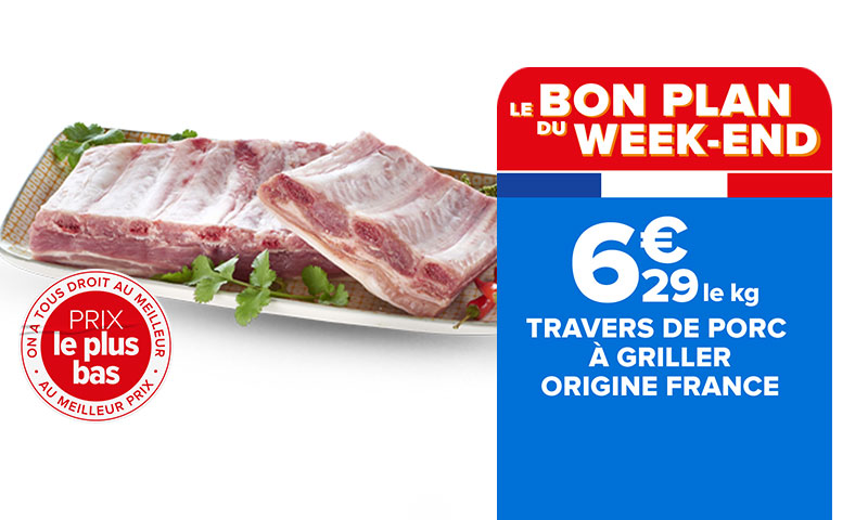 Auteur Sujet: Carrefour et Market : Travers de porc à griller France 6,29€ le kg (9/8 - 11/8)  (Lu 666 fois)