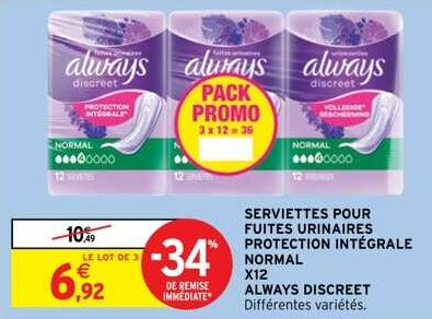 Serviettes Discreet always chez Intermarché Hyper (04/06 - 16/06)