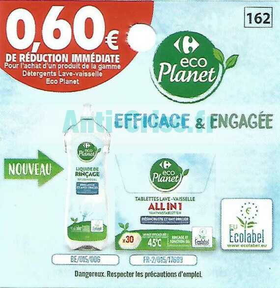 Bdr 0,60€ Carrefour éco Planet détergents lave-vaisselle