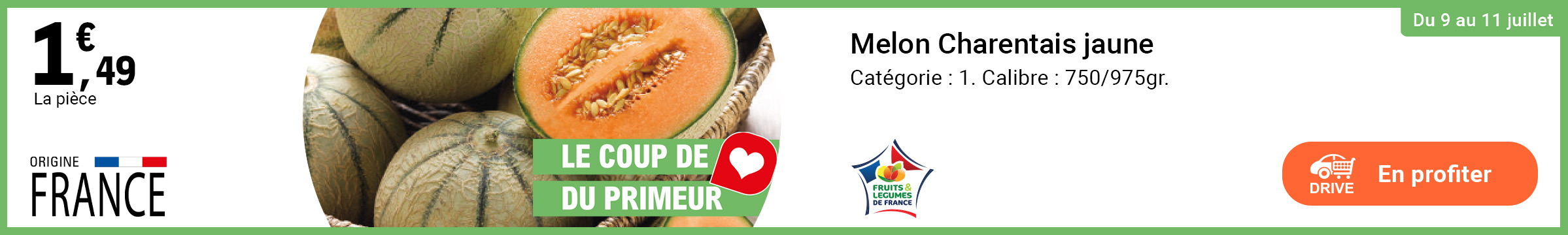 Leclerc : melon charentais jaune origine France 1.49€ la pièce (09/07 - 11/07)