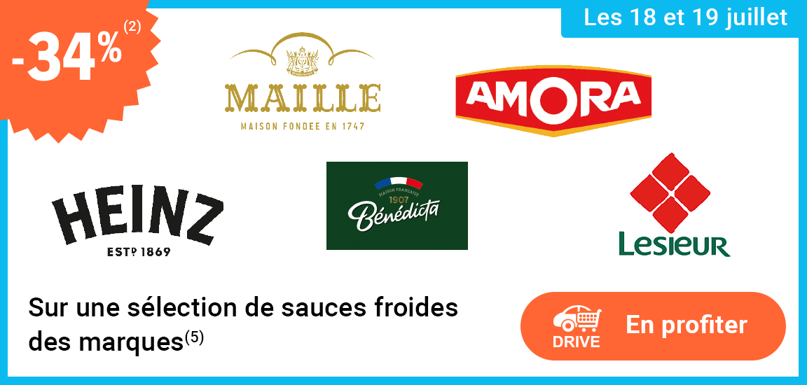 (5) Offre non valable sur les sauces crudités, vinaigrettes et moutardes.