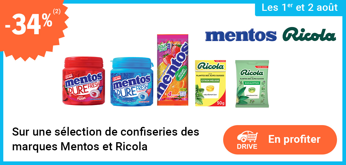Auteur Sujet: Leclerc : 34% de RI sur sélection confiseries marques Mentos/Ricola (1/8 - 2/8)  (Lu 565 fois)