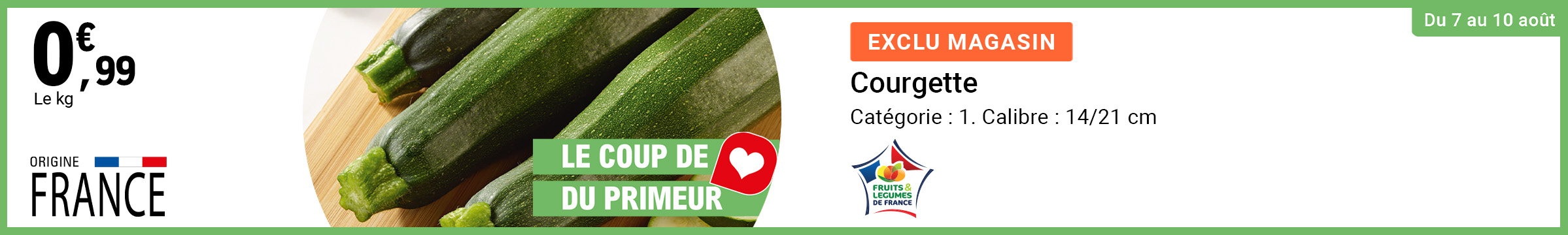 Leclerc : courgette origine France 0.99€ le kg (07/08 - 10/08)