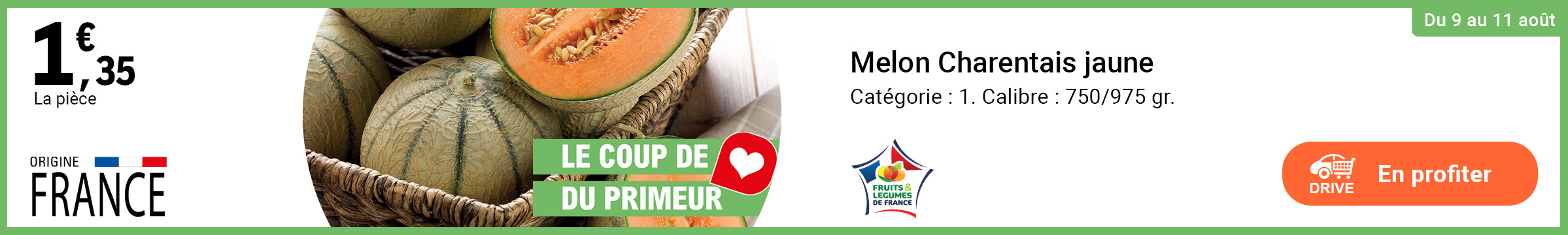 Leclerc : melon charentais jaune origine France 1.35€ la pièce (09/08 - 11/08)
