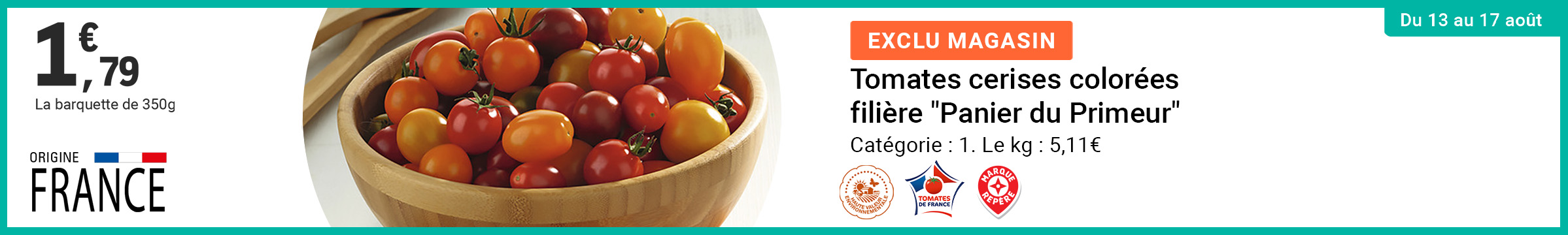 Leclerc : tomates cerises "Panier du Primeur" France 1.79€ les 350g (13/8-17/8)
