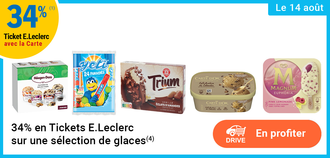 Auteur Sujet: Leclerc : 34% en tickets leclerc sur une sélection de glaces (Le 14/08)  (Lu 1030 fois)