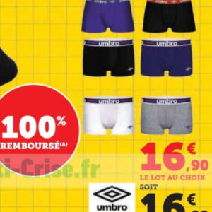 Boxers Homme Umbro 100% Remboursés en Bon d'Achat chez Hyper U (06/09 - 07/09)