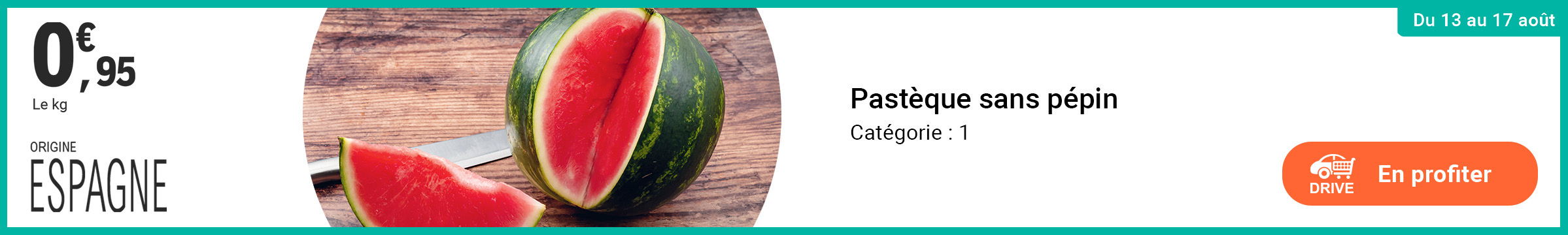 Re: Leclerc : pastèque sans pépin origine Espagne 0.95€ le kg (13/08 - 17/08)