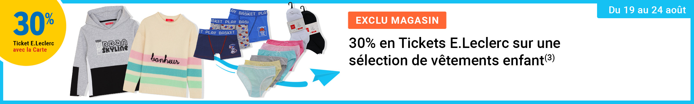 Leclerc : 30% en tickets leclerc sur sélection vêtements enfant (19/08 - 24/08)
