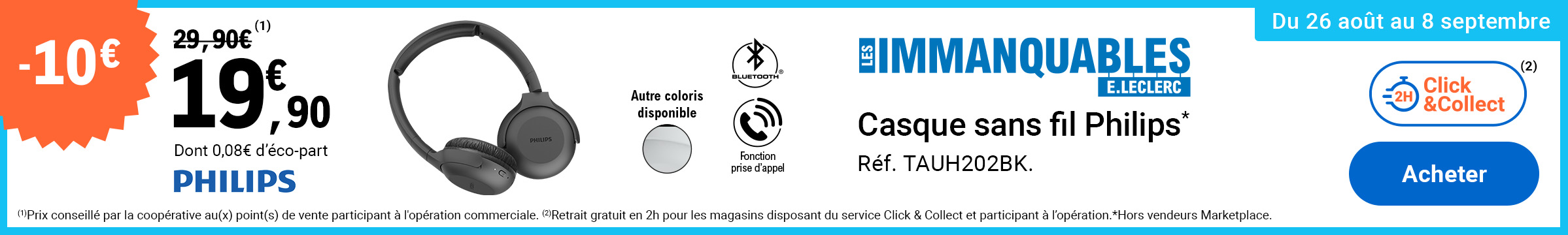 Sujet: Leclerc : casque sans fil Philips 19.90€ (26/08 - 08/09) (Lu 646 fois)