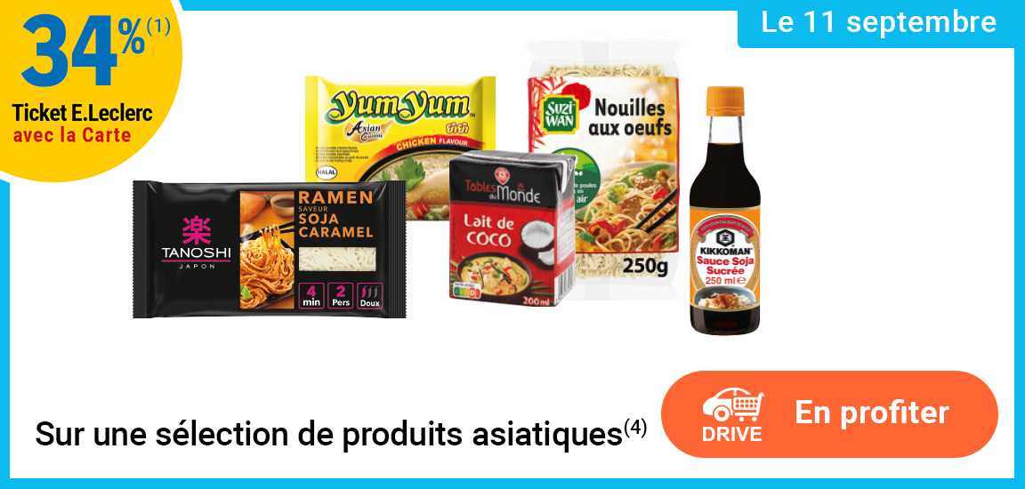 Auteur Sujet: Leclerc : 34% en tickets leclerc sélection de produits asiatiques (Le 11/09)  (Lu 1344 fois)