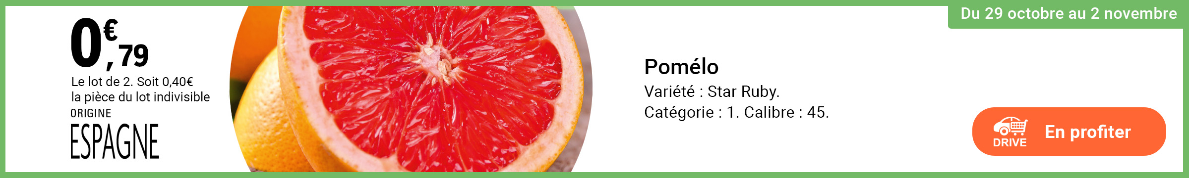 Sujet: Leclerc : pomélo origine Espagne 0.79€ le lot de 2 (29/10 - 02/11) (Lu 367 fois)