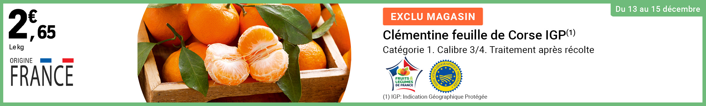 Leclerc : clémentine origine France 2.65€ le kg (13/12 -15/12)