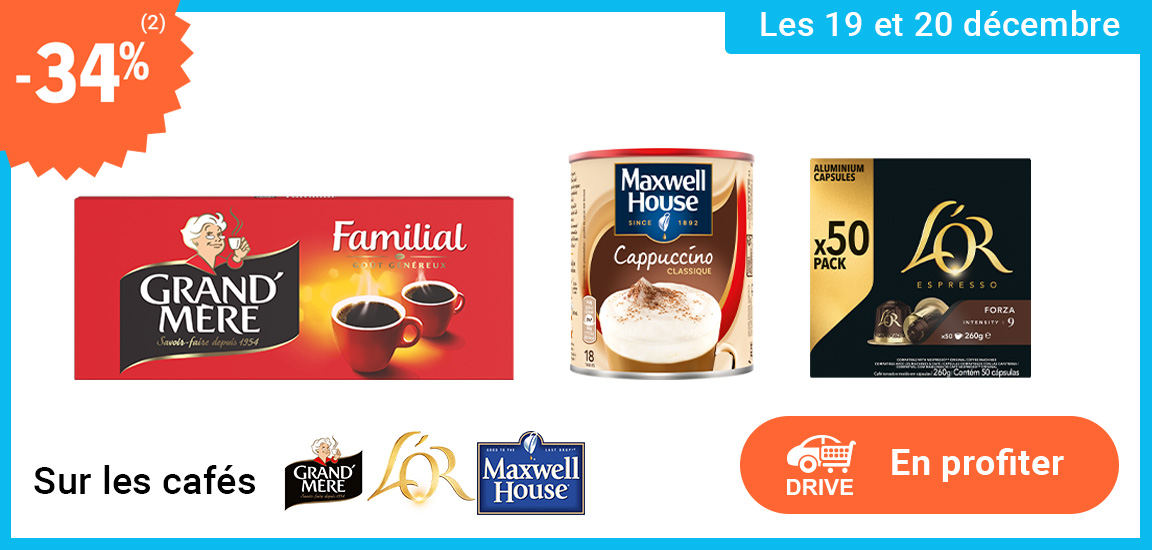 Auteur Sujet: Leclerc : 34% de RI sur cafés Grand'Mère, L'Or et Maxwell House (19/12 - 20/12)  (Lu 646 fois)