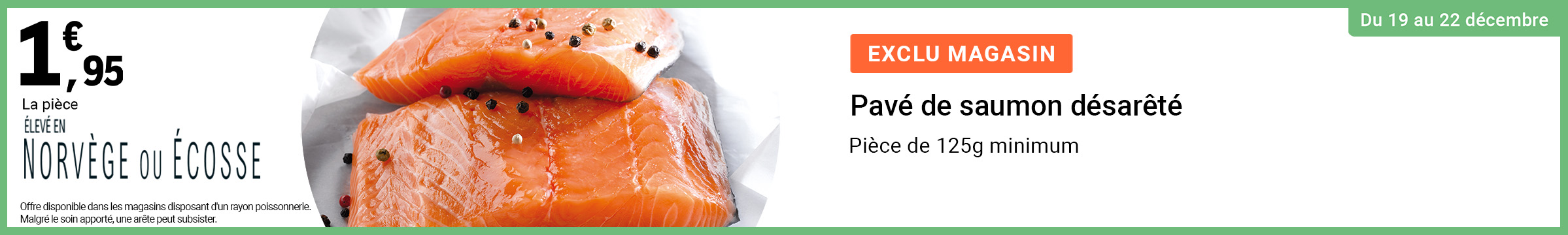 Sujet: Leclerc : pavé de saumon désarêté Norvège/Ecosse 1.95€ la pièce (19/12 - 22/12) (Lu 567 fois)