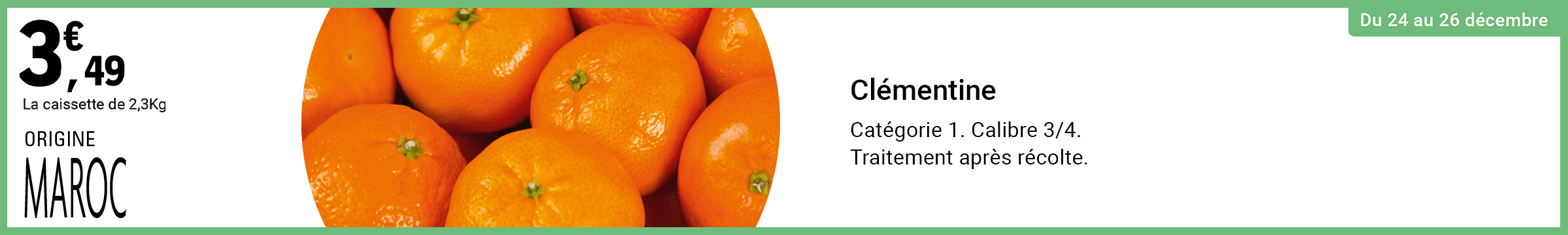 Re: Leclerc : clémentine origine Maroc 3.49€ la caissette de 2.3kg (24/12 - 26/12)