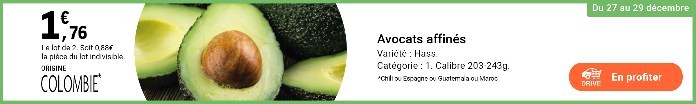 Leclerc : avocats affinés origine Colombie 1.76€ le lot de 2 (27/12 - 29/12)