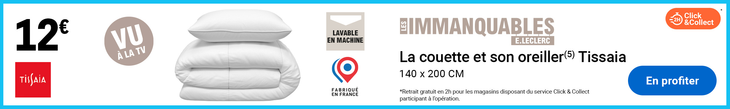 Leclerc : couette 140x200 cm et son oreiller Tissaia 12€ (26/12 - 31/12)