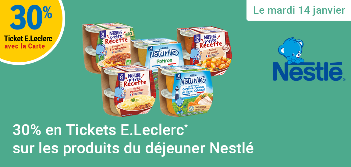 Re: Leclerc : 30% en tickets leclerc sur les produits du déjeuner Nestlé (Le 14/01)