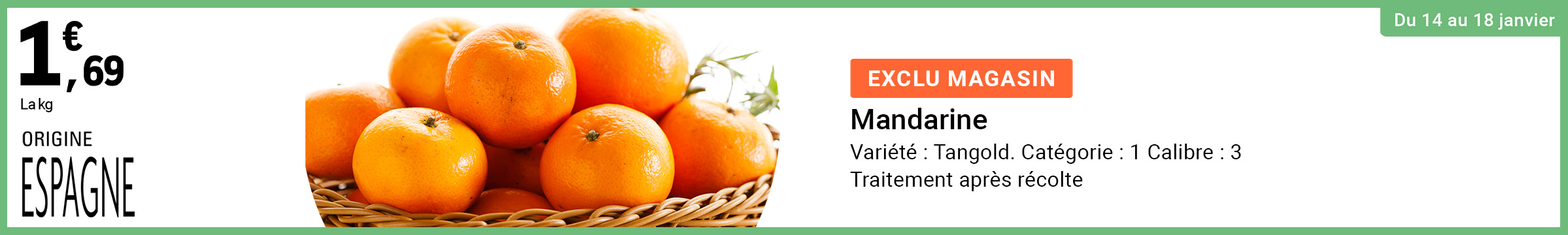 Sujet: Leclerc : mandarine origine Espagne 1.69€ le kg (14/01 - 18/01) (Lu 569 fois)